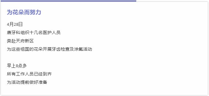 兩個幼兒園,超過500個小朋友接受了檢查+涂氟,可著實(shí)讓唐牙科的醫(yī)護(hù)人員忙的顧不上歇息,但是我們的心情依然非常開心。一是因?yàn)槲覀優(yōu)槭刈o(hù)花朵付出的努力,二是因?yàn)榛ǘ鋫冋娴奶蓯劾瞺
