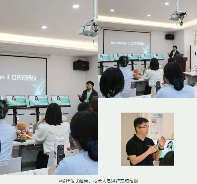 3月15日 雙方舉行了隆重的授牌儀式 先期5臺(tái)Aoralscan 3口腔掃描儀 2臺(tái)AccuFab系列3D打印機(jī) 出現(xiàn)在授牌儀式上 后期還將有5臺(tái)口掃陸續(xù)到位。